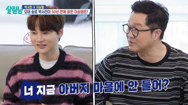 박서진이 이 점을 강조하며 “올해 기운이 좋은 것 같다. 여자를 만날 수 있는 기운이 있다”라고 말하자 지상렬은 “왜 갑자기 어머니 얘기를 하다가 여자 얘기를 하는 건가? 아버지가 마음에 안 드나? 새 아빠로 날 생각하는 건가?”라고 짓궂게 말했다.