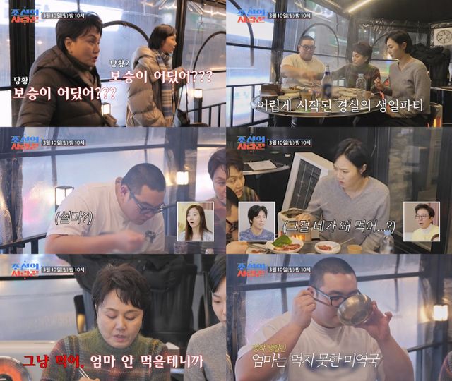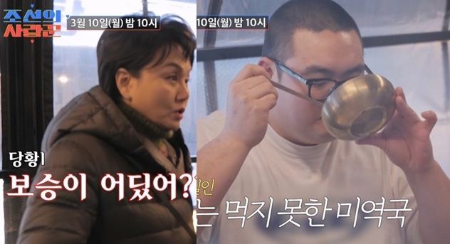"가게에 생일 미역국 제도가 쓰여 있었다"는 손수아의 대답을 듣고 나서야, 이경실은 "미역국 그릇을 달라고 했으면서 그걸 왜 네가 다 먹느냐"고 타박하기 시작했다. 그러자 손보승은 "너무 추워서..."라고 대답했다. 이경실이 "그냥 먹어. 엄마 안 먹을테니까"라고 '미역국 포기 선언'을 하자, 고깃집의 분위기는 바깥 날씨보다 더 얼어붙었다. '철부지 가장' 손보승이 준비한 조마조마 생일 파티는 본 방송에서 공개된다.