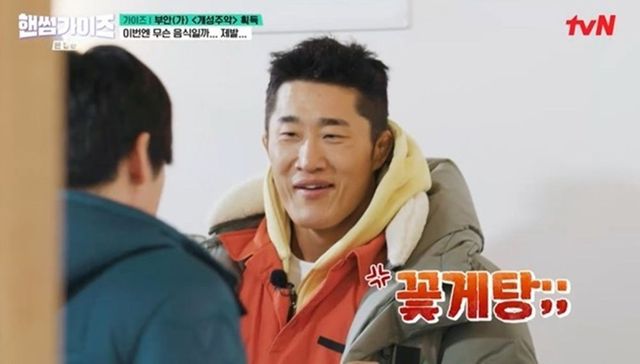 젓갈 정식을 순삭한 가이즈 팀은 추첨 결과에 따라 2분 거리에 있는 꽃게탕집을 찾았다. 김동혁은 신승호가 꽃게탕을 메뉴로 뽑자 헛구역질하며 온몸으로 거부했다. 김동현은 식당에서도 “하루에 6끼를 먹고 있다”며 난감해했지만, 정작 꽃게탕이 나오자 “단백질이 제일 많은 아래쪽 다리”를 달라고 한 뒤 맛있게 먹었다. 신승호도 꽃게탕을 맛보고는 “속살이 진짜 달다”고 감탄했다.