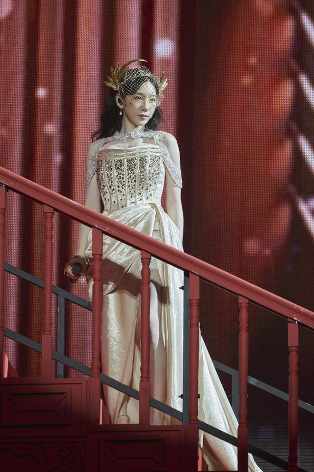 포문은 ‘패뷸러스’가 열었다. 황금빛 드레스와 월계관을 쓴 채로 등장한 태연은 ‘퀸’ 그 자체의 위용을 자랑했다. 태연 뒤에 펼쳐진 거대한 와이드 스크린은 순식간에 공연장을 신전으로 만들었고, 태연은 압도적인 공간 위에서 압도적인 보컬로 객석을 압도하기 시작했다. 특히 천장에서 떨어지는 꽃가루를 받으면서 노래할 땐 여신이 강림한 듯했다.