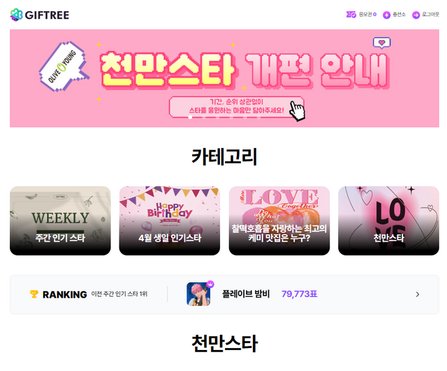 특히, 기프트리는 지난 11월부터 '주간 인기 스타' 혜택을 개편했는데, 기존 1위 스타들에게 제공되는 전광판 광고와 홍보기사 패키지와 더불어 스타를 위해 열심히 투표해준 팬들을 위해 2위 스타에게는 건대입구/합정역 CM보드 광고가 7일간 제공된다.