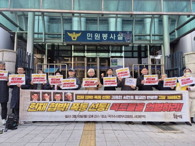 촛불행동은 10일 오후 국수본 앞에서 기자회견을 열고 김 전 장관, 서 의원, 전 목사를 내란 선동 혐의로 고발했다고 밝혔다. 황 전 총리에 대해선 내란 선전 혐의로 고발했다.
