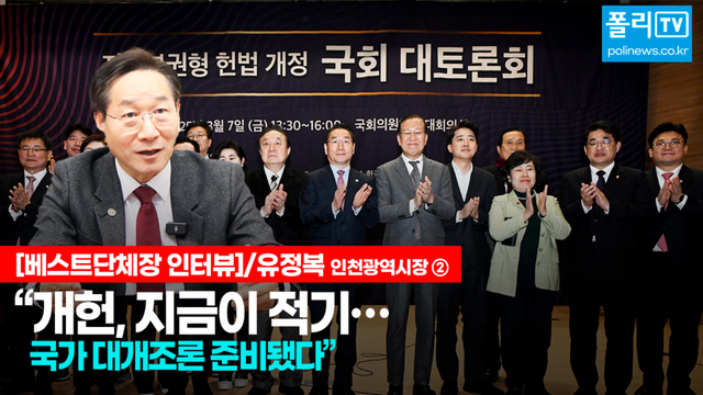 [폴리뉴스 김진강 기자] 유정복 인천광역시장은 윤석열 대통령의 탄핵 결정이 되지 않은 지금이 ‘개헌의 적기라’고 밝혔다.