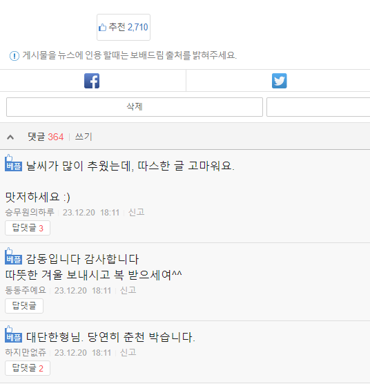 작년 크리스마스에 패딩기부했다는 글