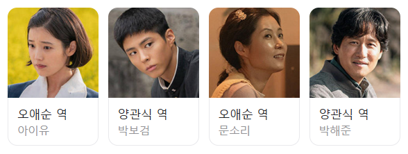 배우 아이유와 박보검이 각각 애순, 관식 역을 맡았다. 세월이 흘러 어른이 된 애순과 관식은 각각 문소리와 박해준이 맡았다.