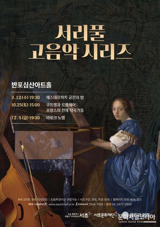 서리풀 고음악 시리즈는 R석 2만원, S석 1만5천원으로 자세한 사항은 서초문화재단 누리집(www.seochocf.or.kr)을 통해서 확인이 가능하다. (문의: 02-3477-2805)