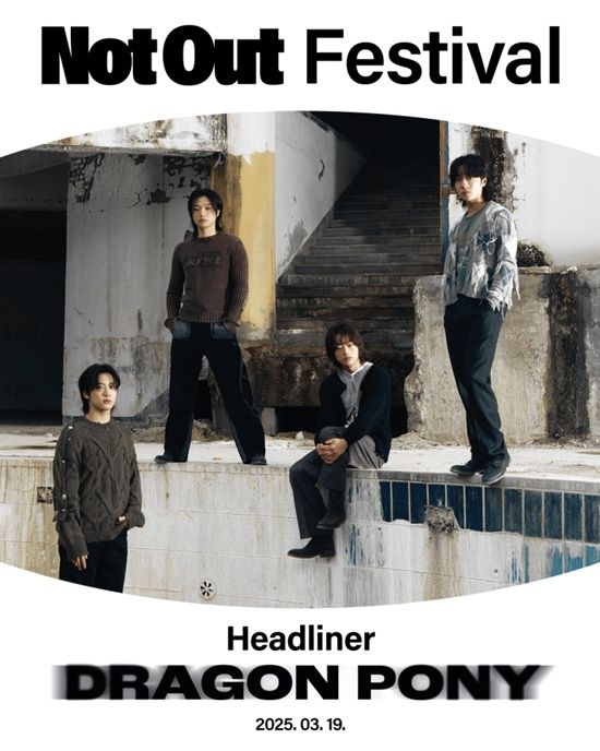 드래곤포니(안태규, 편성현, 권세혁, 고강훈)는 지난 10일 공식 SNS를 통해 두 번째 EP 'Not Out(낫 아웃)'의 세 번째 콘셉트 포토 ''Not Out' Festival - Headliner (Not Out Ver.)'를 게재했다.