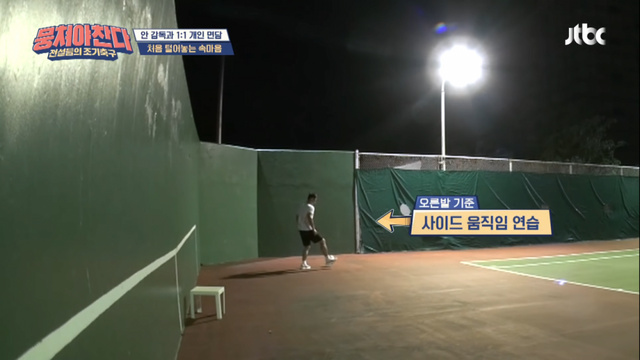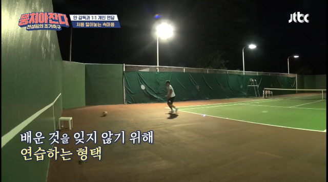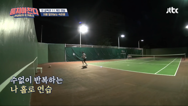 새로운 종목을 잘 하기 위해서 밤늦게 혼자 연습하는 이형택