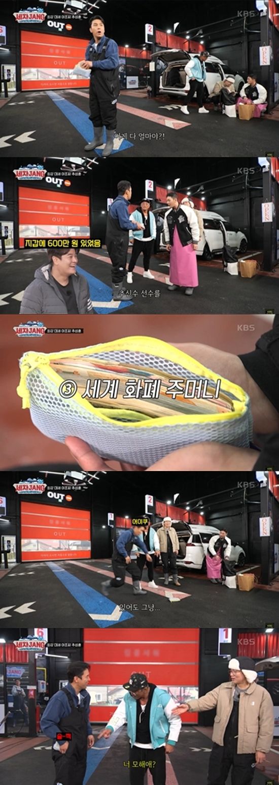 바로 세계 각국의 화폐로 꽉 차 있던 것. 장민호는 "이게 다 얼마냐"라며 감탄했고, 지갑에 600만 원 넣어 다니는 "추신수 선수를 이긴다"고 말해 이목을 집중시켰다.