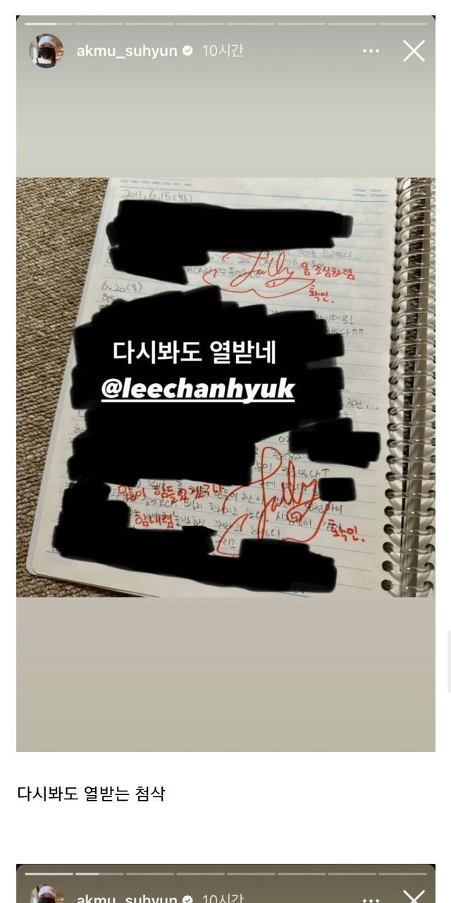 홈스쿨링하고 심심해서 수현이는 일기쓰고 찬혁이는 수현이 일기 훔쳐보고 일기에 첨삭해놨음