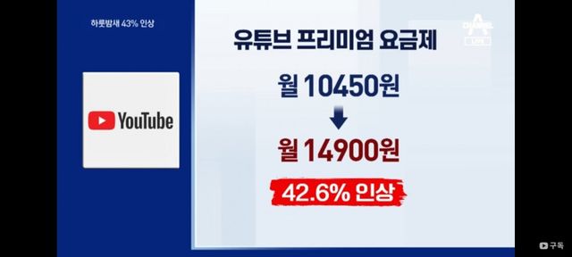 43프로 인상 시, 월 14900원