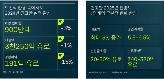 한편, 폭스바겐그룹은 2025년 매출액이 전년 대비 최대 5% 증가할 것으로 예상하며, 영업이익률은 5.5~6.5% 범위를 목표로 설정했다.