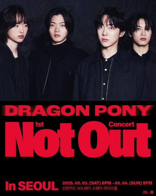 드래곤포니가 오는 5월 3~4일 서울 마포구 신한카드 SOL페이 스퀘어 라이브홀에서 단독 콘서트 '낫 아웃(Not Out)'을 개최하는 가운데, 해당 공연의 티켓은 예매 오픈 2분 만에 모두 판매됐다.