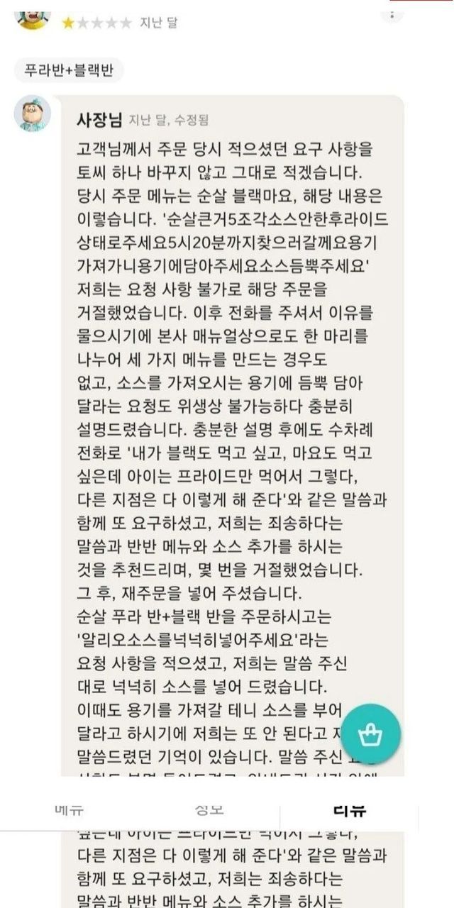 한마리 통닭을 세가지 맛으로 달라고 한 애엄마