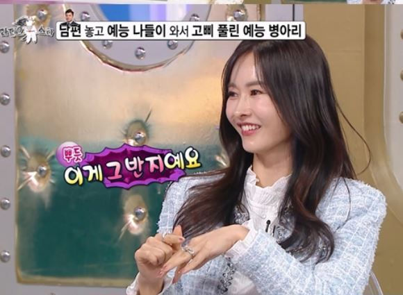 이어 그는 "이게 그 반지예요"라며 스튜디오에서 추신수가 선물한 대왕 반지를 자랑해 모두의 눈길을 사로잡았다.