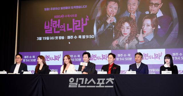 12일 오후 서울 마포구 상암동 스탠포드호텔에서 KBS2 새 수목시트콤 ‘빌런의 나라’ 제작발표회가 진행됐다. 이날 행사에는 김영조 감독과 배우 오나라, 소유진, 서현철, 송진우, 박영규, 최예나가 참석했다.