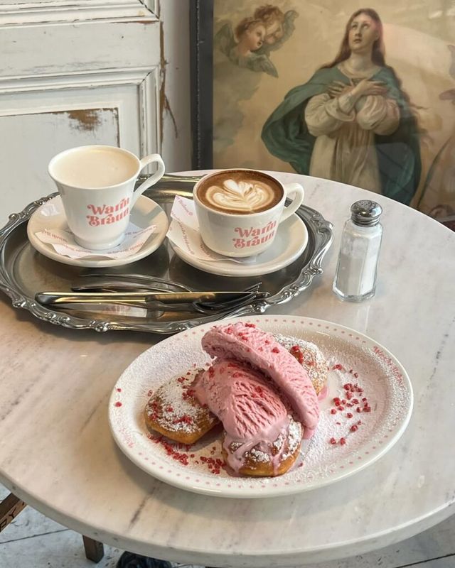 프랑스식 도넛 ‘베녜’ 맛집으로 입소문이 난 웜브라운. 앤틱한 인테리어와 감성적인 소품이 가득한 이곳은 안소희 유튜브에 등장하며 더욱 유명해졌는데요. 대표 메뉴는 바삭한 도우 속에 부드러운 필링이 가득한 베녜와 레몬 크림 라떼입니다. 딸기, 땅콩, 녹차 등 다양한 아이스크림을 곁들인 베녜가 인기 만점이죠.