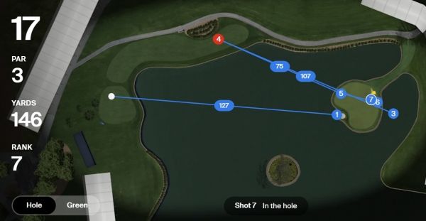 로어는 17번홀에서 티샷한 볼이 그린을 넘어 물에 퐁당. 그런데 페널티 존에서 친 볼이 그대로 홀을 파고 들어가 위기를 넘겨 파세이브에 성공했다.