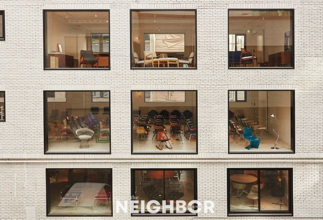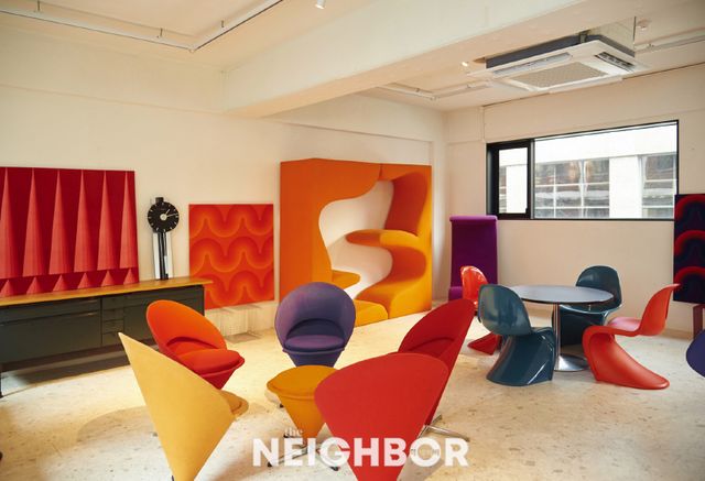 색색의 콘 체어와 팬톤 체어가 진열된 앤더슨씨 성수 구관.