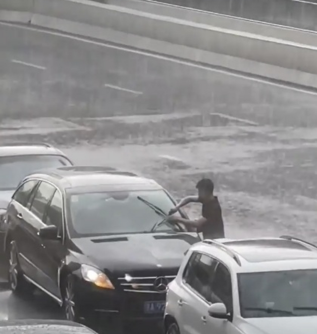 벤츠 운전자는 폭우를 맞으며 차량 밖으로 나와 와이퍼를 분리한 뒤 다시 조립을 시도한다. 하지만 와이퍼는 꼬인 부분이 풀린 이후에도 멈춰서 더 이상 움직이지 않는다.