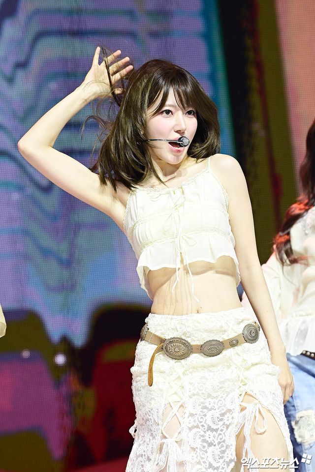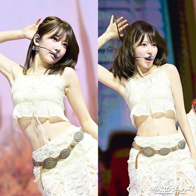 이날 쇼케이스에 참석한 르세라핌 사쿠라가 무대를 선보이고 있다.