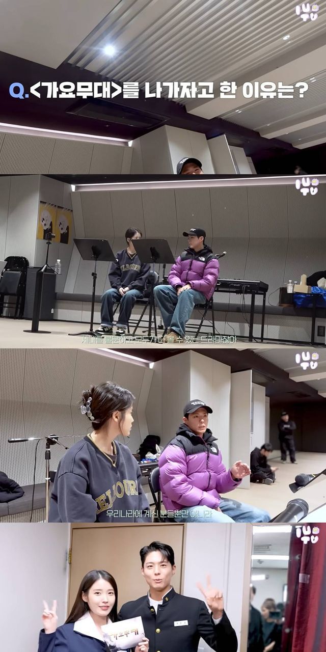 공개된 영상에서 아이유는 박보검과 KBS 1TV '가요무대' 출연에 앞서 연습을 이어가고 있는 모습. 아이유는 박보검에게 "왜 가요무대를 하고 싶었는지"라고 물었다.
