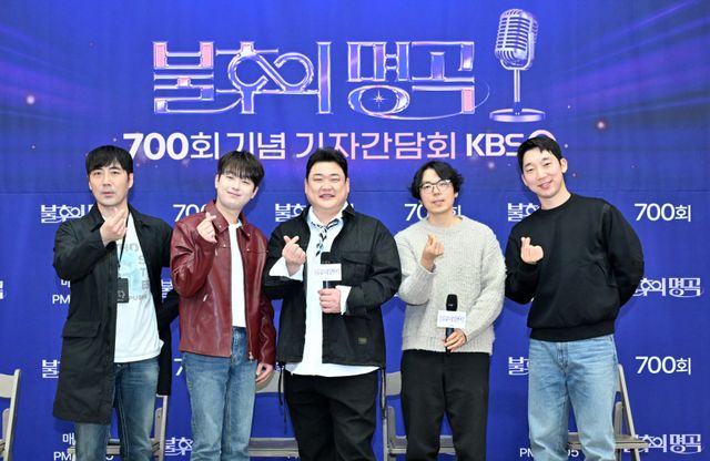 17일 서울 영등포구 여의도동 KBS에서 KBS2 예능프로그램 ‘불후의 명곡’ 700회를 맞아 기자간담회가 열렸다. 이 자리에는 MC 김준현, 이찬원, 박형근PD ,김형석PD, 최승범PD가 참석했다. 또 다른 MC 신동엽은 스케줄 상 아쉽게 참석하지 못했다.