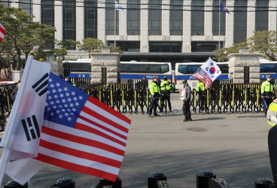윤 대통령의 탄핵심판 선고 당일에도 재판관 위협과 헌재 난입, 집회 참가자 간 충돌 등이 예상된다. 예상치 못한 사고가 발생할 가능성도 있다. 지난 2017년 박근혜 전 대통령 탄핵심판 선고일엔 집회가 폭력 사태로 번지며 4명이 사망했다. 당시 집회 참가자들은 경찰버스를 탈취해 차벽을 50여차례 들이받았다. 이 과정에서 소음측정 버스의 대형 스피커가 떨어져 70대 남성이 숨지기도 했다.