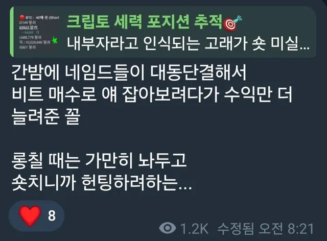 청산가가 85K에서 86K로 올라가면서 결국 인플루언서 연합의 패배
