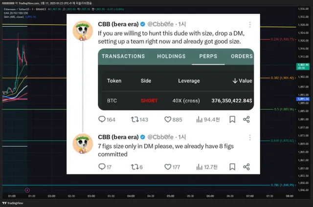 그리고 어젯밤 트위터에서 초갑부로 알려진 CBB라는 인플루언서가 저스틴 선 등 여러 고래들과 합심해서