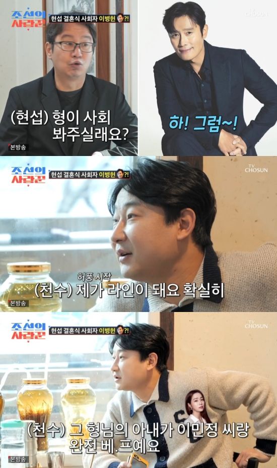 심현섭은 "십여 년 전에 영화 시사회에 갔는데 병헌 형이 왔다. '넌 결혼 안 하냐?' 해서 '할 때 되면 하겠지'라고 했다. (이병헌이) '형 꼭 불러라' 했다. 형이 사회 봐주실래요?' 했더니 '그럼' 하고 갔다"라며 과거를 회상했다.
