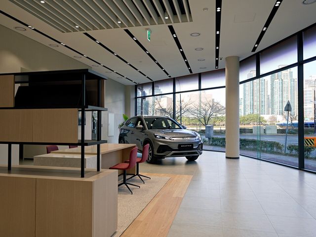 BYD Auto 부산 수영 전시장은 지하 1층, 지상 2층에 786m²(약 240평) 규모로 조성됐으며, 최대 8대의 차량을 전시할 수 있는 공간을 갖추고 있다. 고객이 편안한 분위기에서 전문적인 상담을 받을 수 있는 상담 공간을 갖추는 한편, 감각적이고 세련된 인테리어로 자연스럽게 브랜드 아이덴티티를 느낄 수 있도록 구성했다.