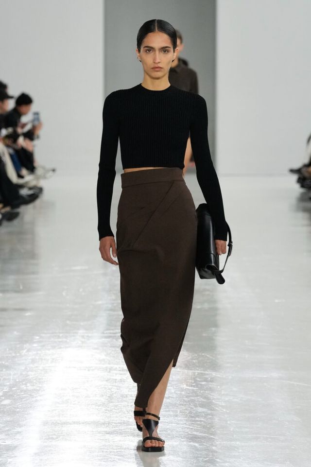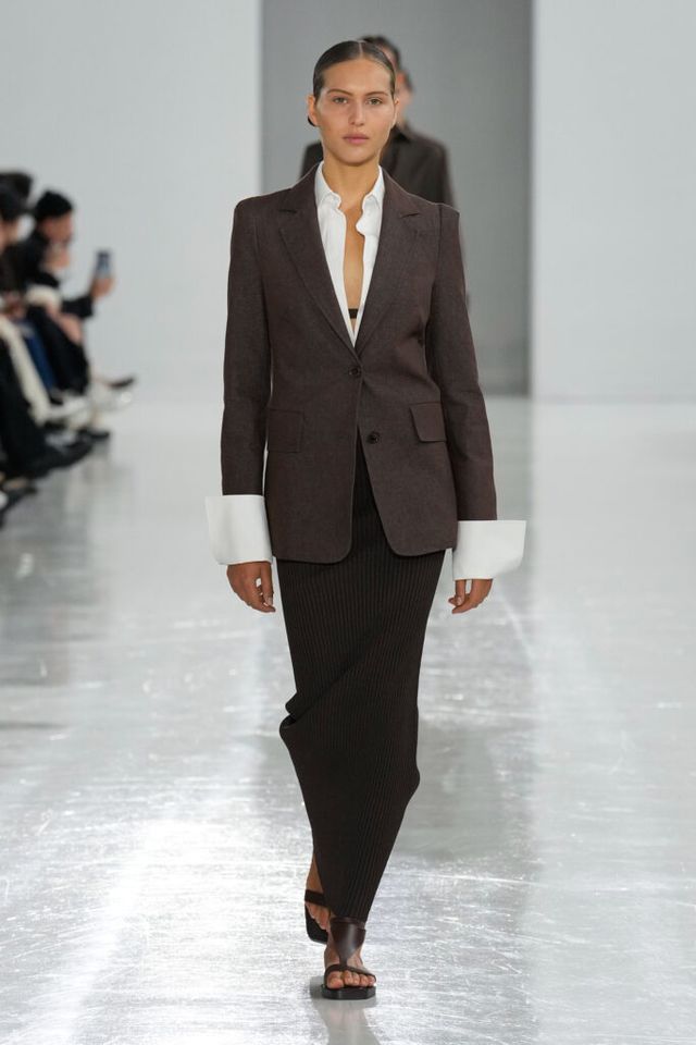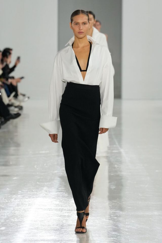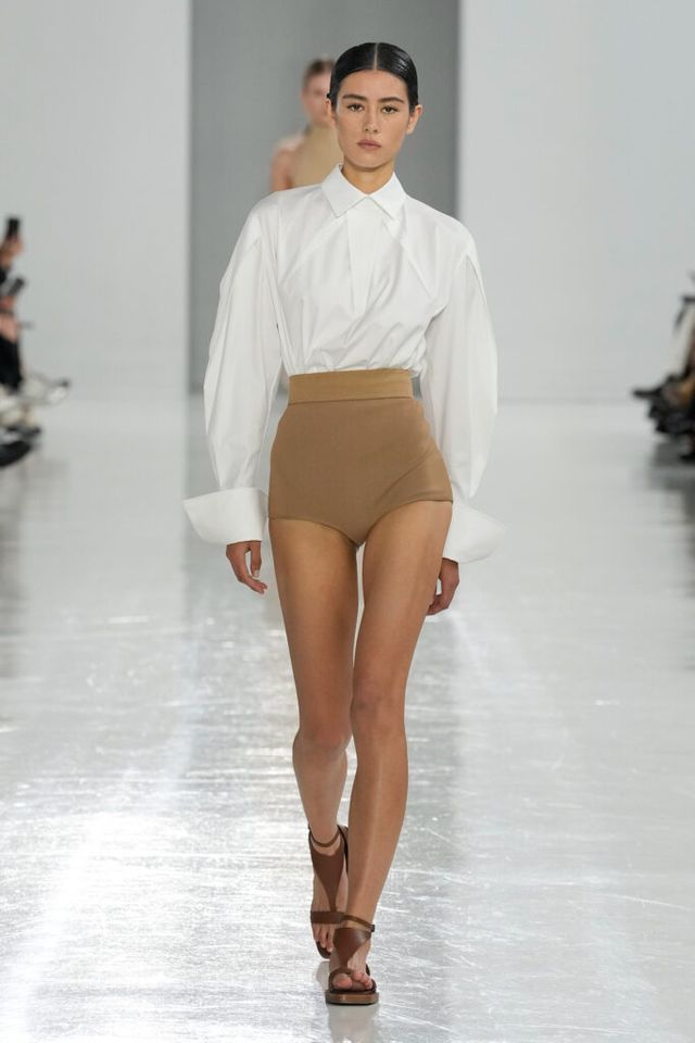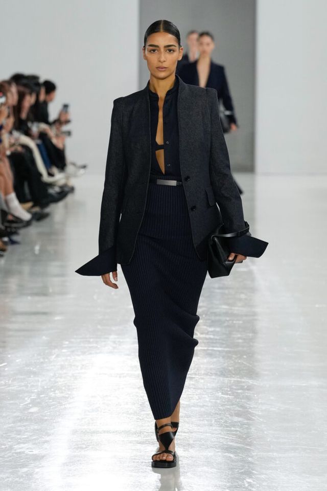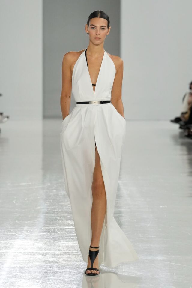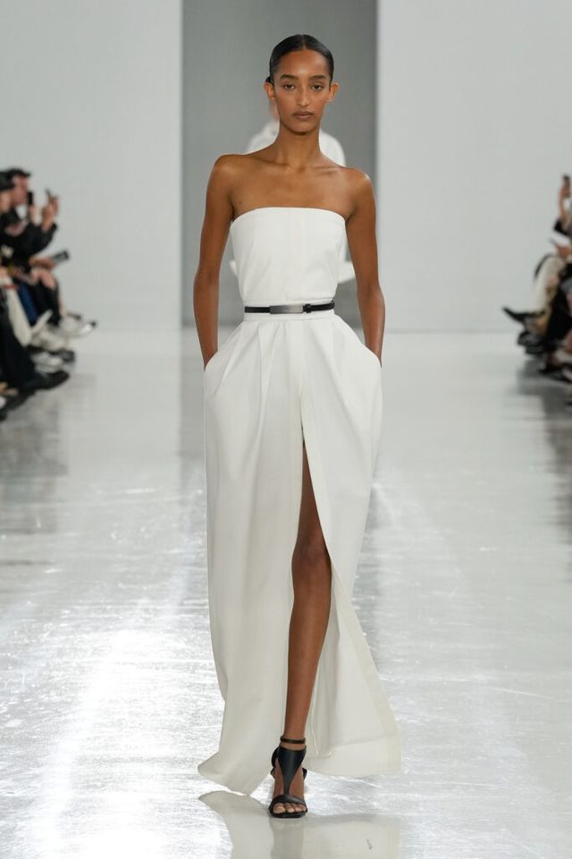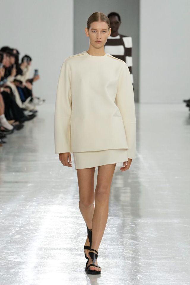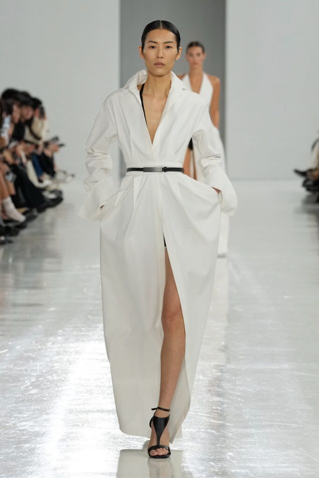 NOTE 역사 속 선구적 여성들을 조명해온 막스마라는 이번 시즌 4세기의 수학자이자 철학자 히파티아(Hypatia)에게 영감 받은 ‘과학과 마법(Science and Magic)’ 컬렉션을 공개했다. 그의 수학 연구 속 삼각방정식을 입체적 다트(dart) 디테일로 컬렉션에 녹여내고, 과학 실험실을 떠올리며 크리스털 화이트, 델피니움 블루, 질산염 실버 같은 컬러 팔레트를 적용해 막스마라의 ‘콰이어트’ 위트를 느낄 수 있었다.