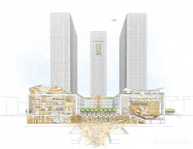 기존 높이와 외관 중심의 랜드마크 디자인 양식에서 벗어나 주변 지역과의 조화로운 스카이라인을 형성하고, 유연하고 수평적인 공간 배치 등이 강조되는 최근 도시 개발 트렌드가 반영됐다.