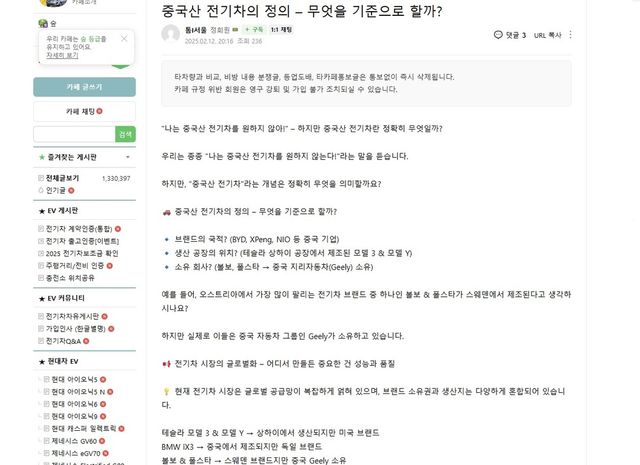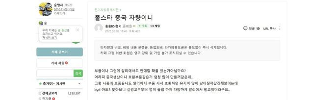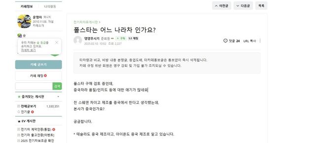 네이버 자동차 커뮤니티 '전기차 동호회'에는 최근 폴스타에 대한 글이 다수 올라왔다. "폴스타는 어느 나라 차인가요?"라거나 "폴스타 중국 차량이니" 등 올해에 올라온 글만 다수다.