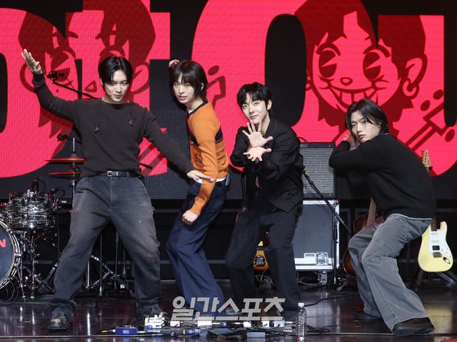 그룹 드래곤포니가 19일 오후 서울 서대문구 예스24 원더로크홀에서 열린 새 EP 'Not Out' 발매 기념 쇼케이스에서 포토타임을 갖고 있다. 앨범과 동명의 타이틀곡 'Not Out'은 꿈을 향해 끊임없이 도전하는 현대 청춘들의 모습을 야구 용어에 빗대어 표현한 곡. 서병수 기자 qudtn@edaily.co.kr /2025.03.19/