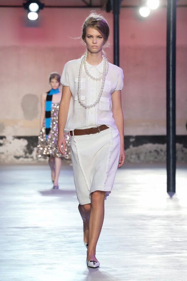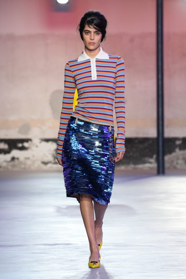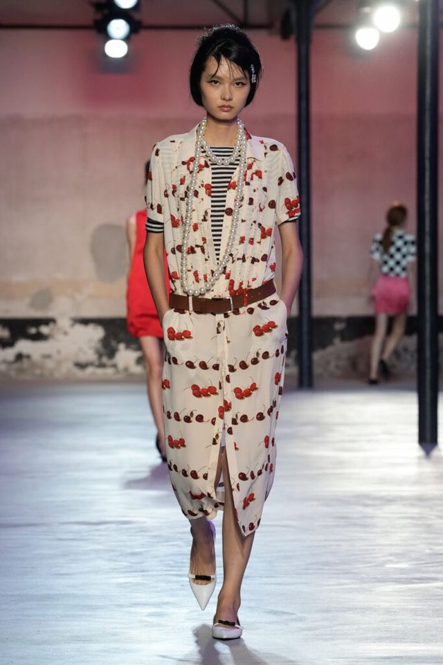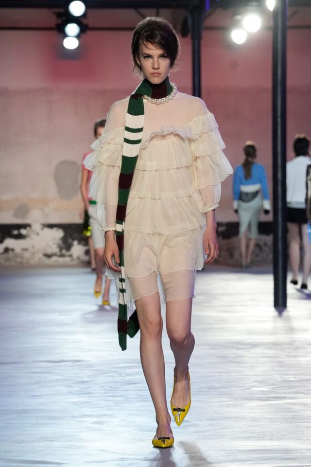 NOTE 스위스 사진작가 카를하인츠 바인베르거(Karlheinz Weinberger)의 사진집 속 반항적인 영국 모즈족의 모습에 매료된 알레산드로 델라쿠아는 1960년대 패션을 런웨이로 소환했다. 한껏 부풀린 머리와 두툼한 아이라인으로 꾸민 모델들이 걸어 나왔고, 그들의 옷차림에는 스포티한 스카프와 재킷, 진주 액세서리, 그리고 오트 쿠튀르를 방불케 하는 섬세한 장식이 한데 뒤엉켜 있었다. 이탈리아인의 시선으로 해석한 자유분방한 2025년의 모즈족은 바로 이런 모습.