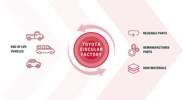 토요타는 영국 공장에서 연간 약 1만 대의 차량을 재활용할 계획이며, 이를 통해 약 12만 개의 부품을 다시 사용하고, 300톤의 고순도 플라스틱과 8,200톤의 철강을 회수할 것으로 예상된다.