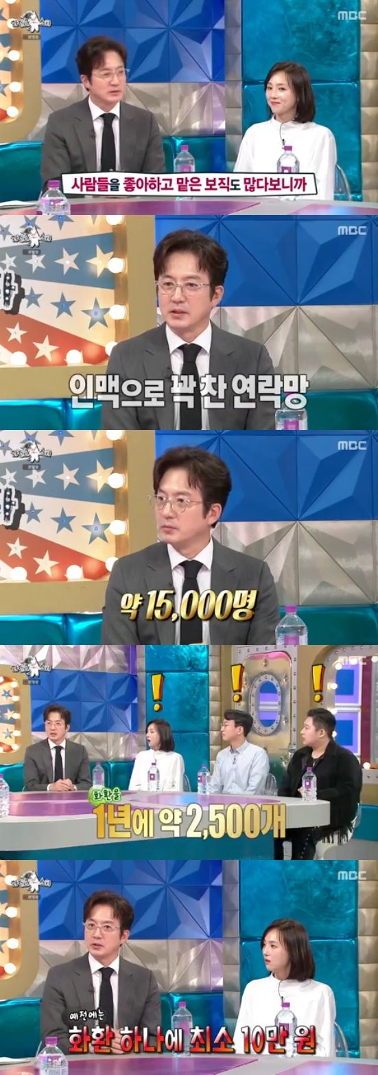 특히 이날 정준호는 '연예계 인맥왕'답게 인맥 관리에만 '억'소리 나게 돈을 쓴다고. 정준호는 "사람을 좋아하고, 맡고 있는 역할도 많다. 핸드폰에 15000명 정도 저장이 되어있다"고 말해 모두를 놀라게 했다.