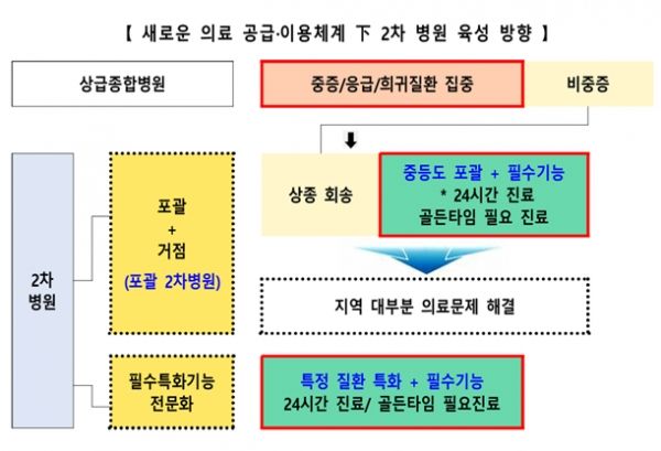 이를 위해 정부는 필수 진료기능을 수행하는 역량있는 종합병원을 지역 거점화해 포괄 2차 종합병원을 적극 육성하겠다고 밝혔다.