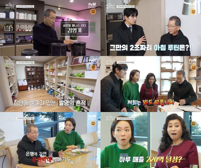 20일 오후 8시 방송되는 tvN STORY '백억짜리 아침식사' 5회에는 세계 최초로 착즙기를 개발한 발명가이자 시대를 앞서가는 혁신성으로 글로벌 입지를 다진 2조 원의 사업가 김영기 회장이 출연한다.