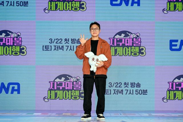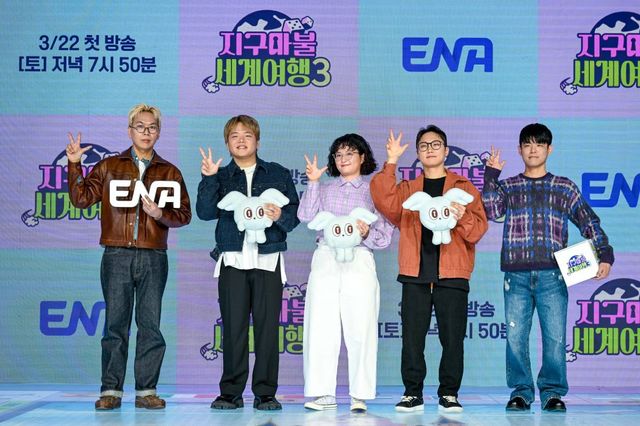20일 오전 11시 서울 마포구 쇼킹케이팝센터에서 진행된 ENA 예능 ‘지구마불 세계여행3’ 제작발표회. 이날 행사에는 김태호 PD와 김훈범 PD를 비롯해 여행 유튜버 빠니보틀, 원지, 곽튜브가 참석했다.