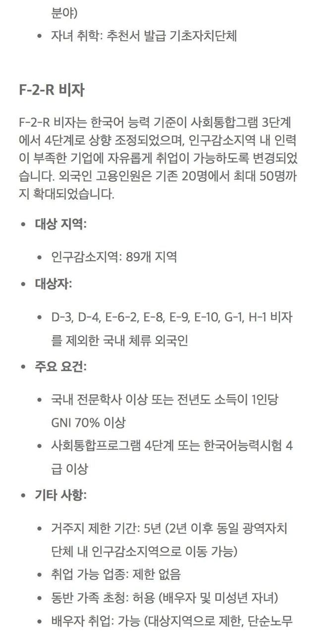 이미 일하고 있던 짱깨의 체류 기간 연장+그 짱깨의 배우자 및 자식까지 입국 허용+배우자도 단순노무 가능