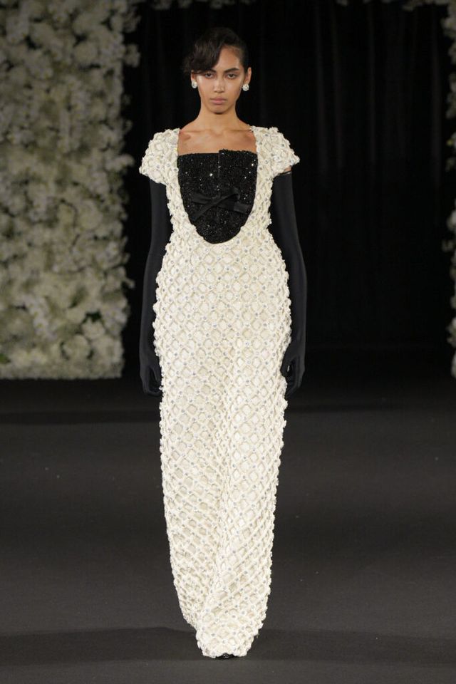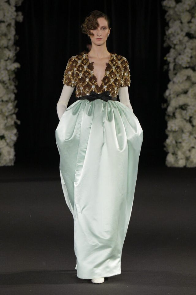 NOTE 런던의 도체스터 호텔 볼룸에서 관현악단의 연주와 함께 소규모 관중 앞에서 진행한 리처드 퀸 컬렉션 쇼는 마치 중세 귀족의 결혼식을 보는 듯했다. ‘시간이 지나도 소중히 간직할 수 있는 옷’. 리처드 퀸이 지난 시즌부터 추구하고 있는 미학이다. 굳센 런던의 쿠튀리에는 이번 시즌 역시 시류에 휩쓸리지 않고 경건하고 고고하게 클래식한 컬렉션을 고수했다.