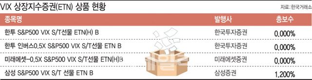 지난달에는 삼성증권이 ‘삼성 S&P500 VIX S/T 선물 ETN B’와 ‘삼성 인버스0.5X S&P500 VIX S/T선물 ETN B’를 출시했다. 같은 달 미래에셋증권도 ‘미래에셋-0.5X S&P500 VIX S/T선물 ETN(H)B’를 선보였다.