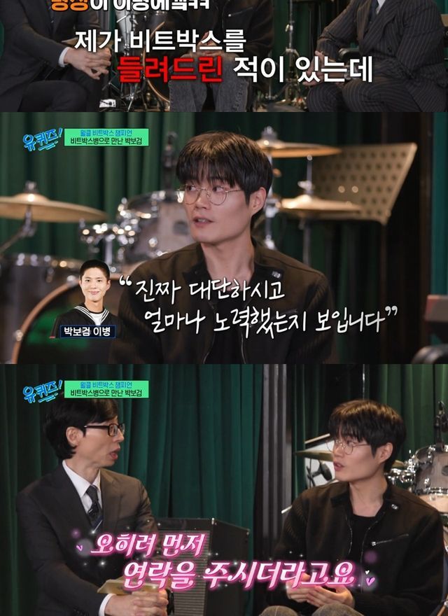 (엑스포츠뉴스 김보민 기자) 비트박서 윙이 박보검과 해군홍보대 시절 에피소드를 공개했다.