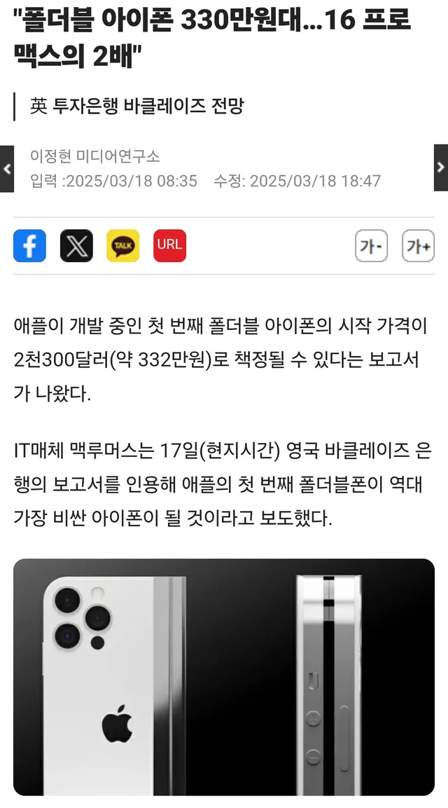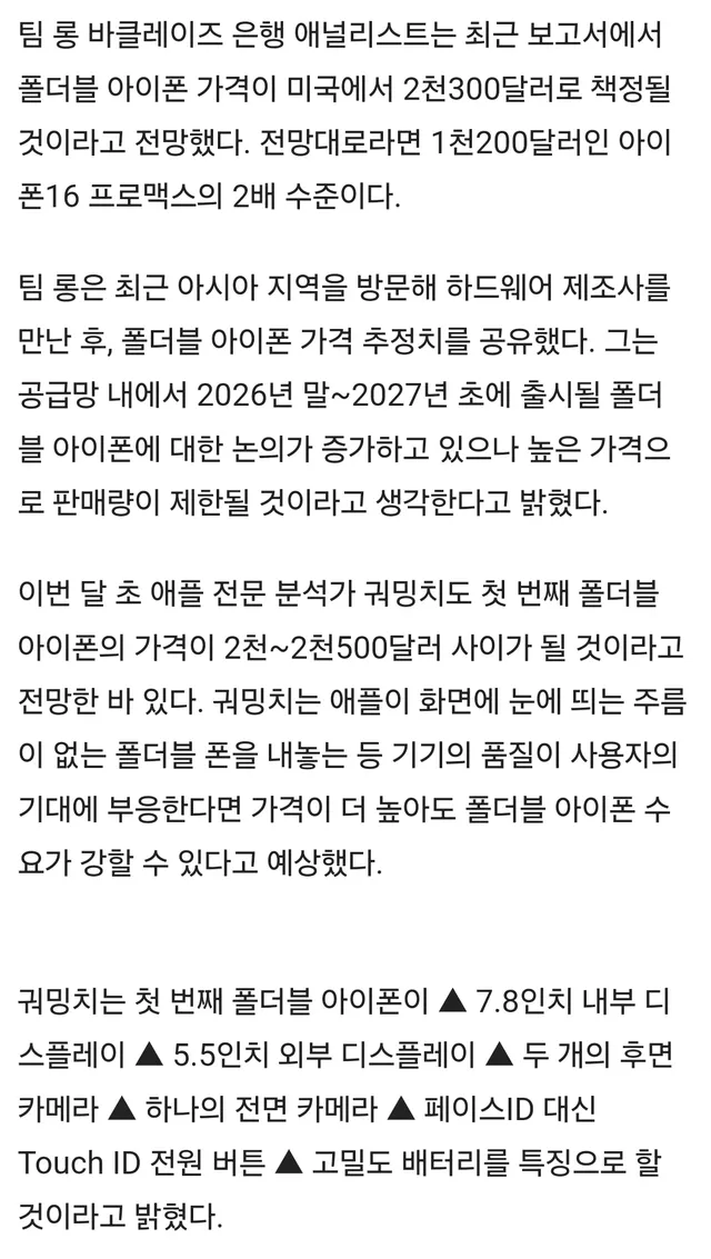 폴더블 아이폰 가격 예상