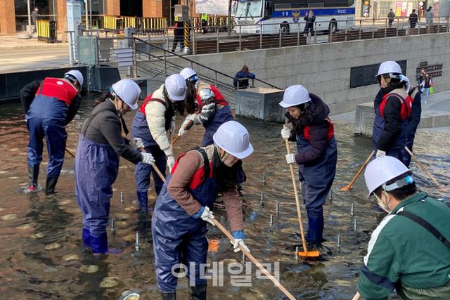 이번 환경 정화 활동에는 롯데마트와 슈퍼 임직원 30여명이 참여했다. 이들은 청계광장 분수대에서 시작해 약 330미터 구간을 따라 청계천 바닥에 낀 녹조류와 퇴적물을 제거했다.