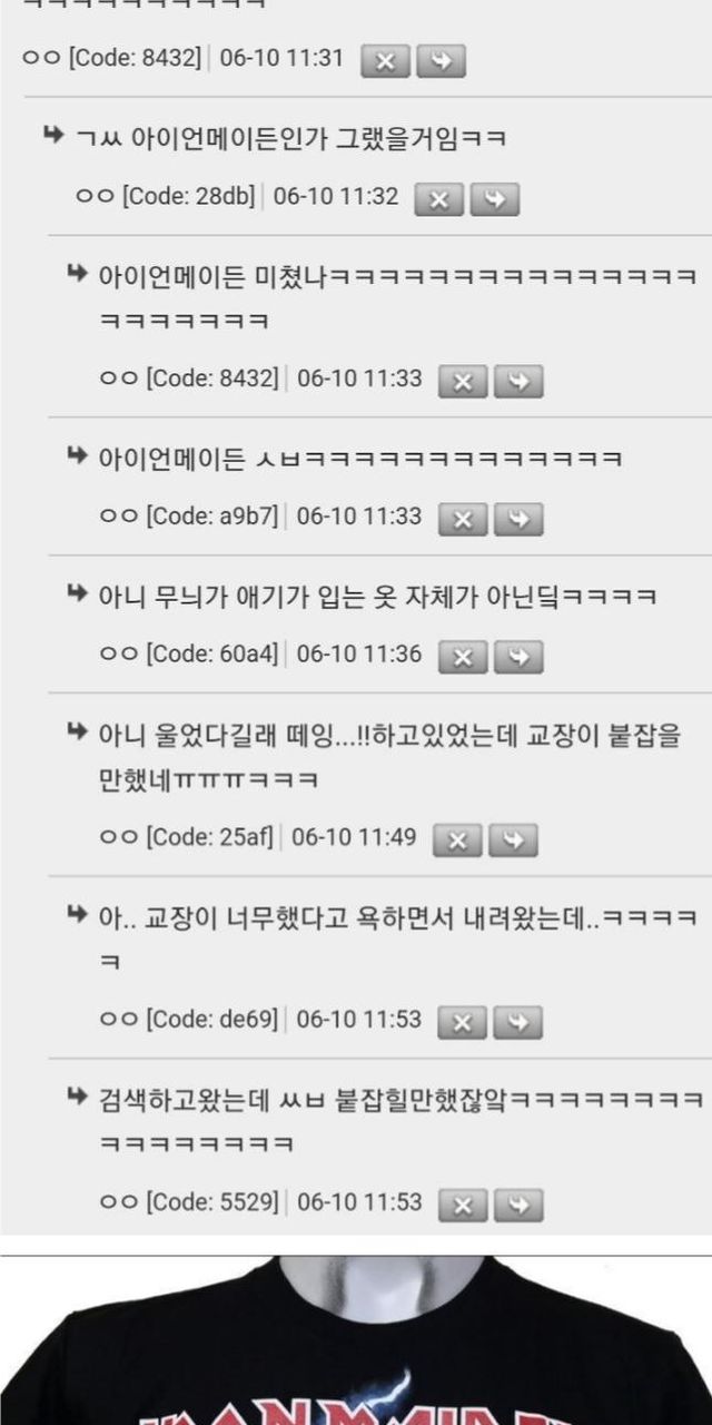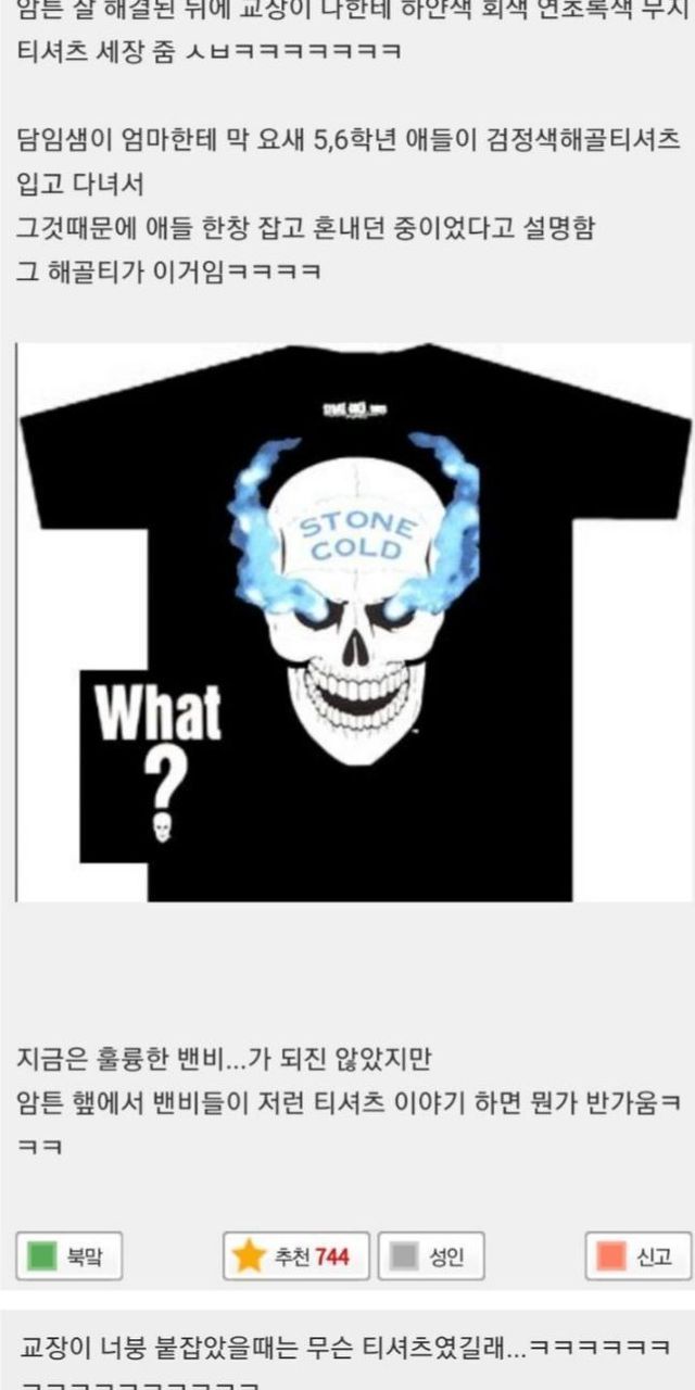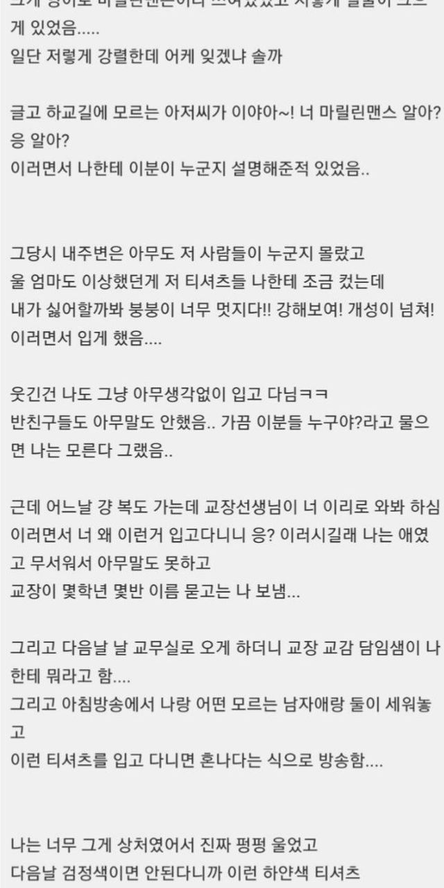 초딩때 티셔츠 땜에 교무실 가고 엄마도 불려 왔어