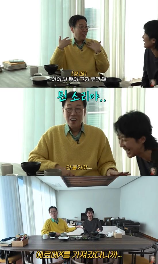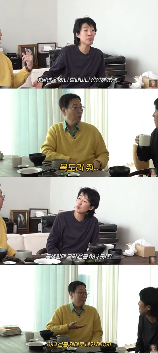 홍진경이 "동생한테 그거 하나 선물 못 해?"라고 반응하자 김영철은 "아니 선물 제대로 내가 해야지"라고 말했다. 홍진경은 "아이 나 됐어. 그거 주면 돼"라고 태연하게 말했는데, 김영철은 "아니 안 줄거야. 에르메X를 가져갔다니까"라고 황당해했다.